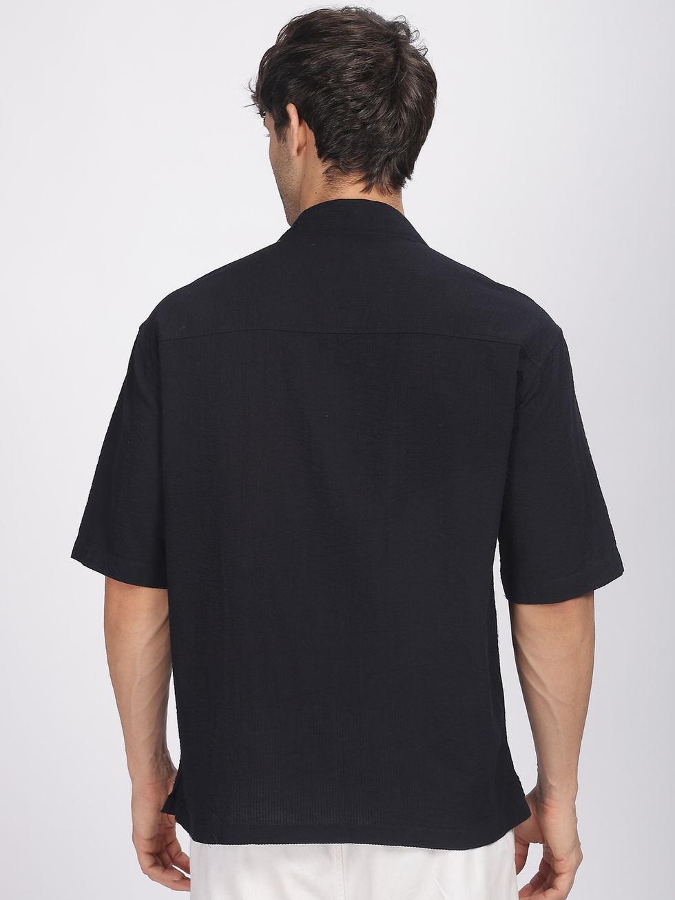 A relaxed-fit shirt made from a cotton, featuring a cuban collar