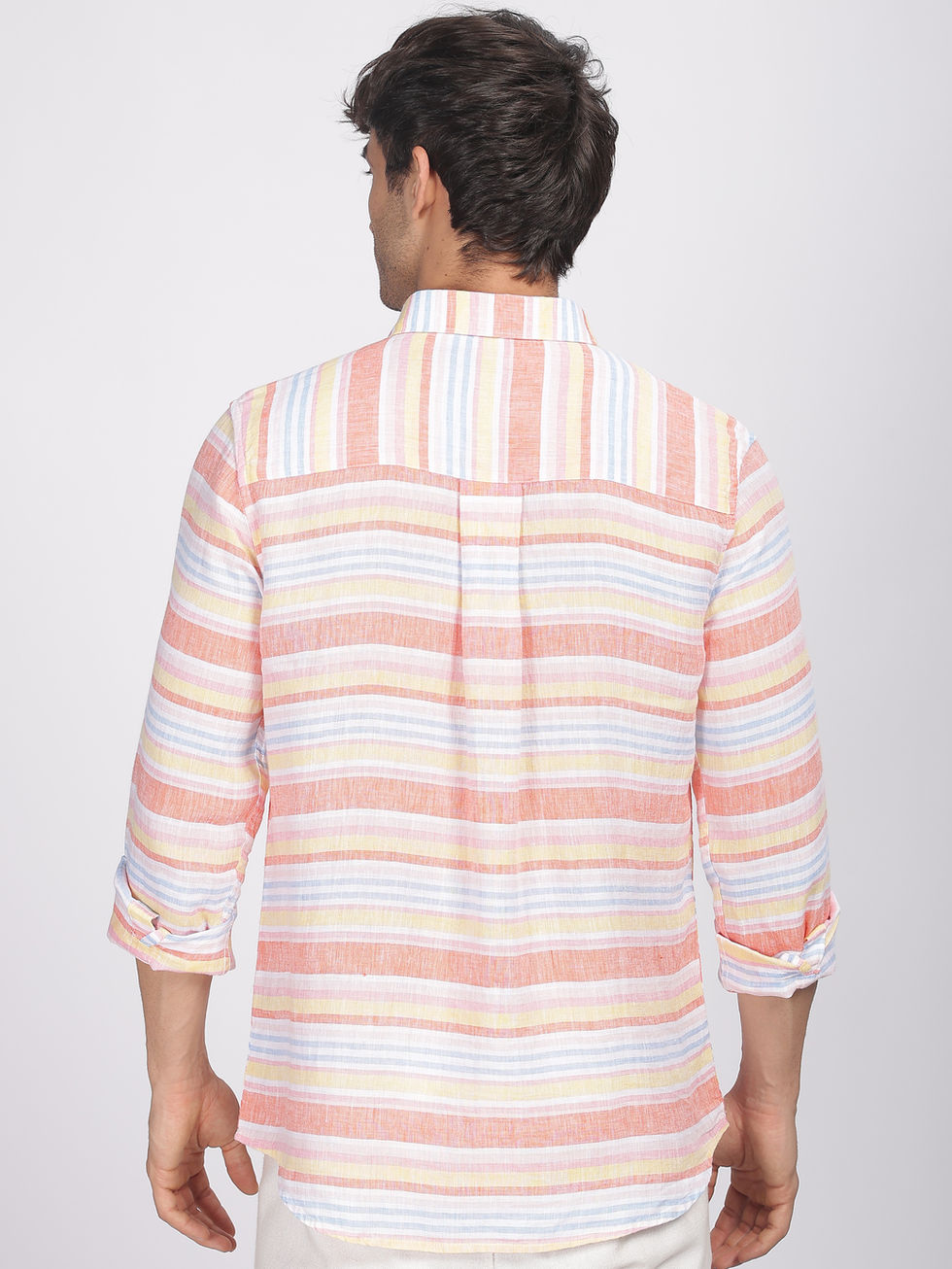 cuffs, and a back yoke. Made from a breathable linen-cotton